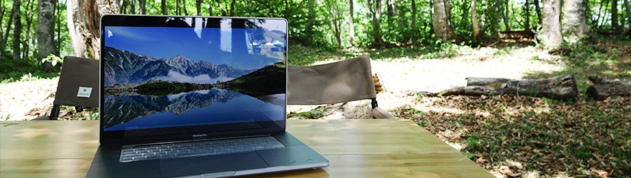 白馬岩岳の山頂、森のオフィスはwifi完備、ウッドデッキには電源も完備しています。静かな森の中で仕事をした後は、カフェでゆっくりくつろいだり、リゾートならではの過ごし方が楽しめます。