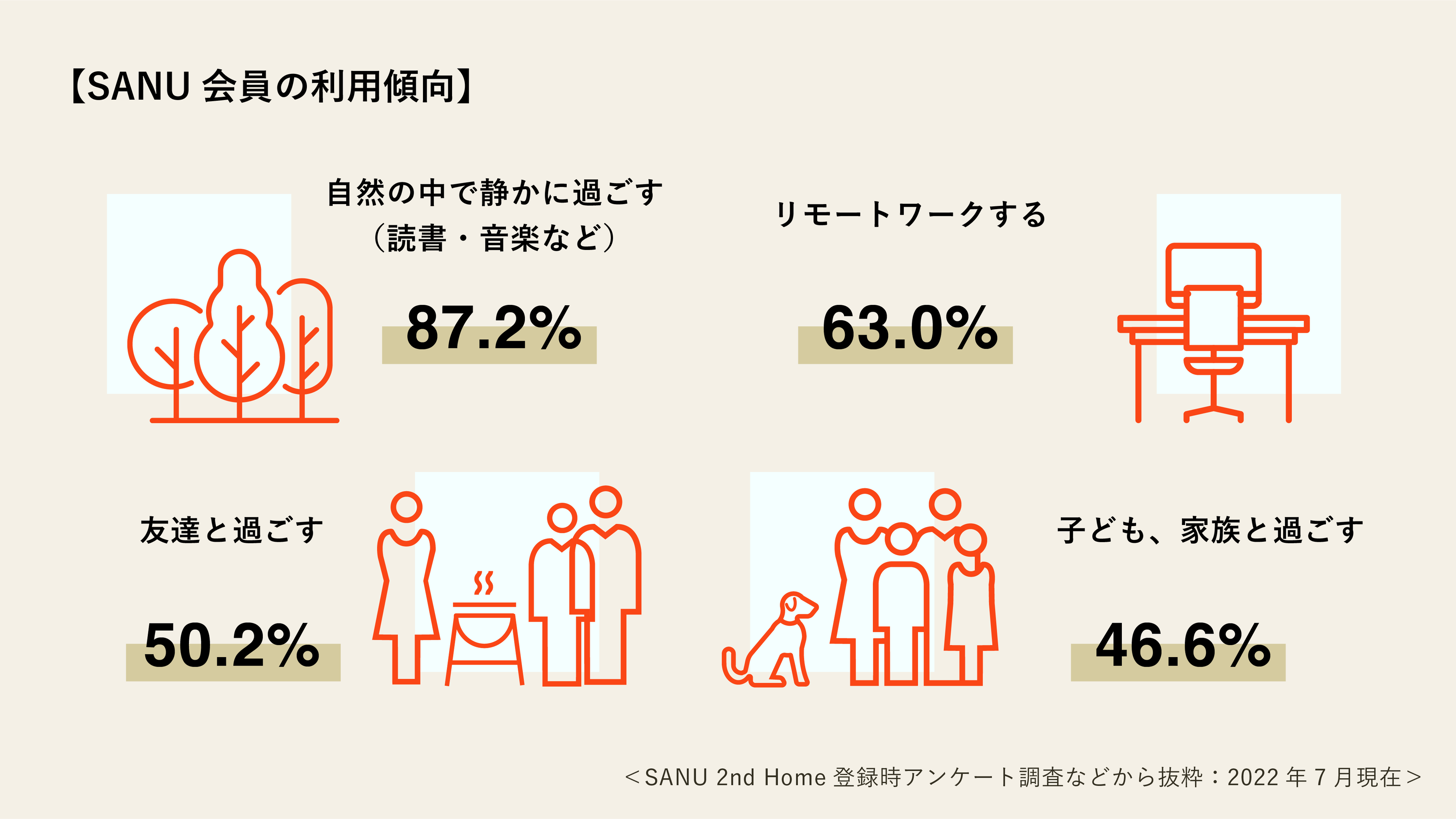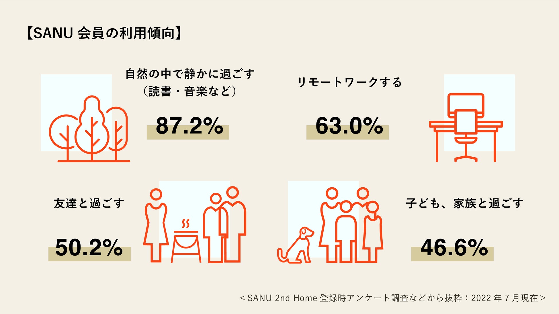 - <別荘所有者>と、<“所有しない”サブスク別荘「SANU会員」>の利用動向から見る、「SANU 2nd Home」の特徴
