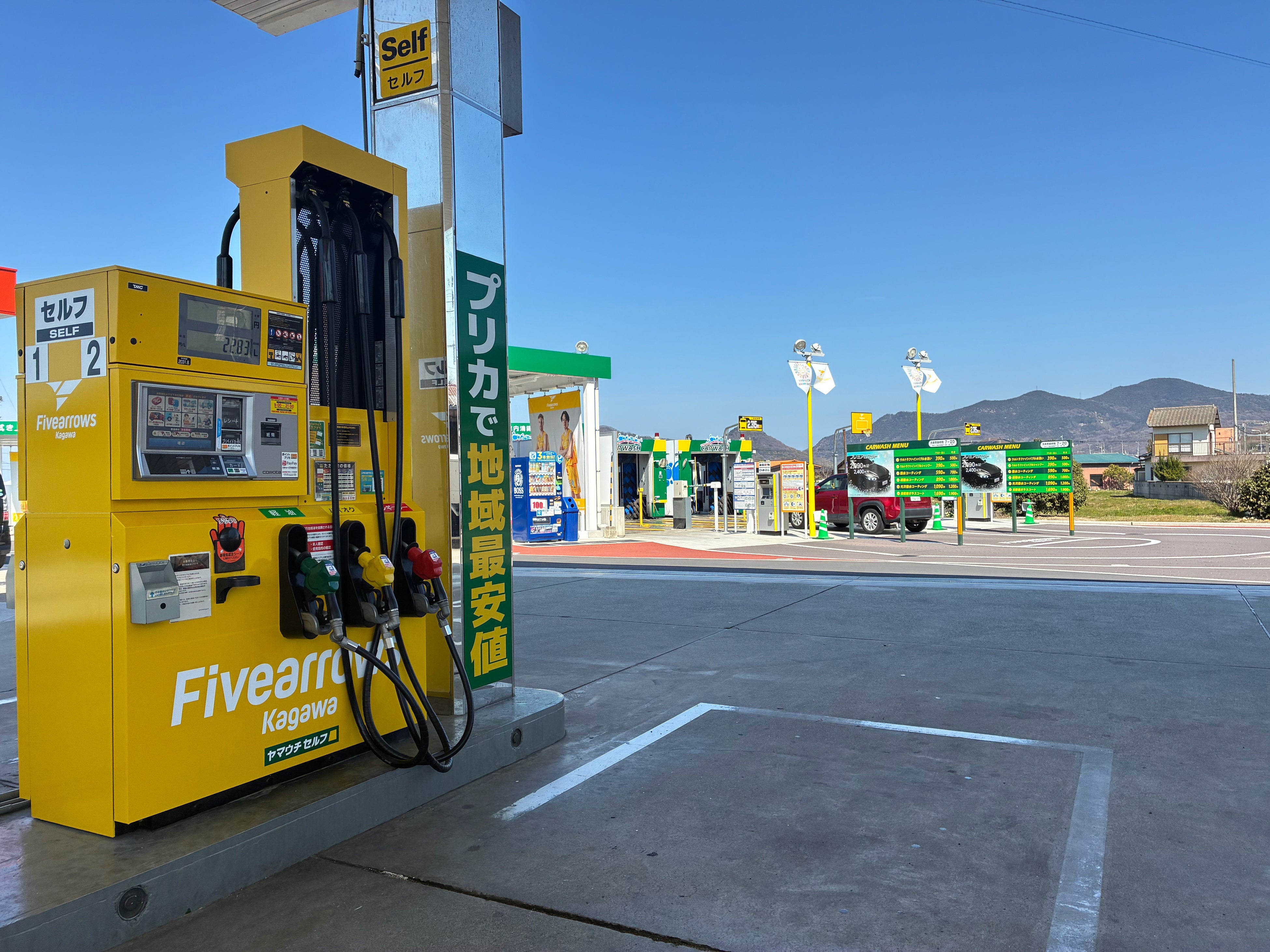 香川県三豊市のガソリンスタンド「ヤマウチセルフ高瀬」がファイブアローズカラーに!