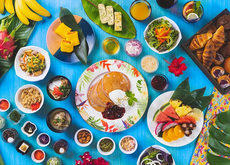 シェフが目の前で調理し、出来立てを提供するライブステーションが魅力です。朝食メニューは、宮古島の紺碧(“アジュール”)の海を思わせるインテリアの中、ゆったりと流れる島時間を感じながら、島の恵みを存分に生かした国際色豊かな料理をお召し上がりください。