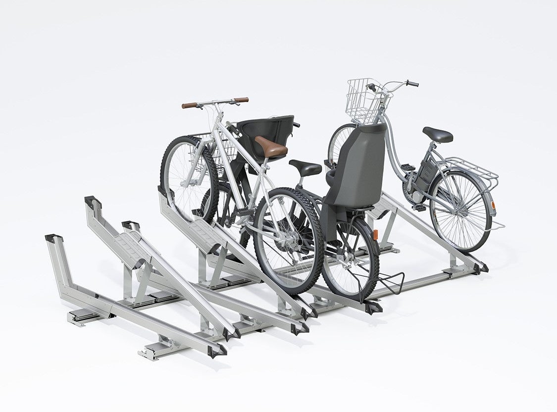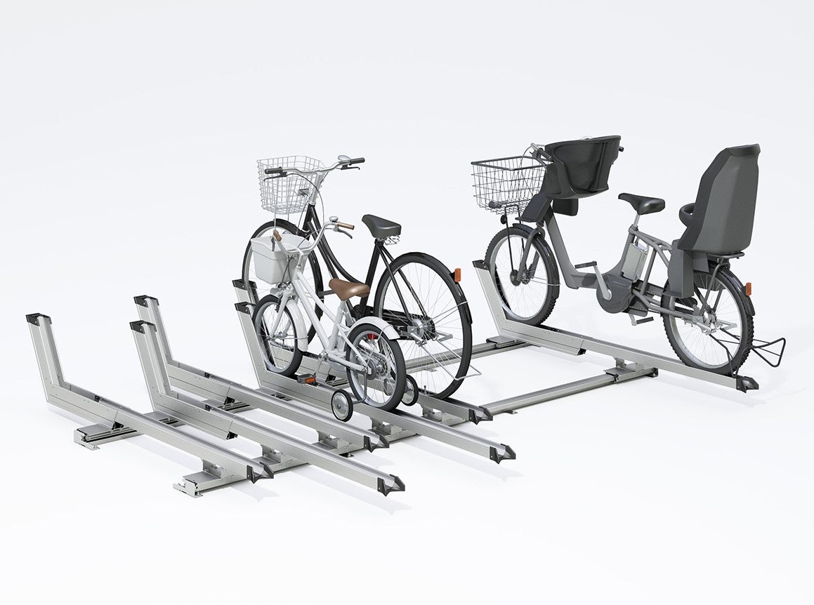 ラックがスムーズに動く2本レール仕様の「アルミ製スライド式自転車ラック」2タイプ新発売