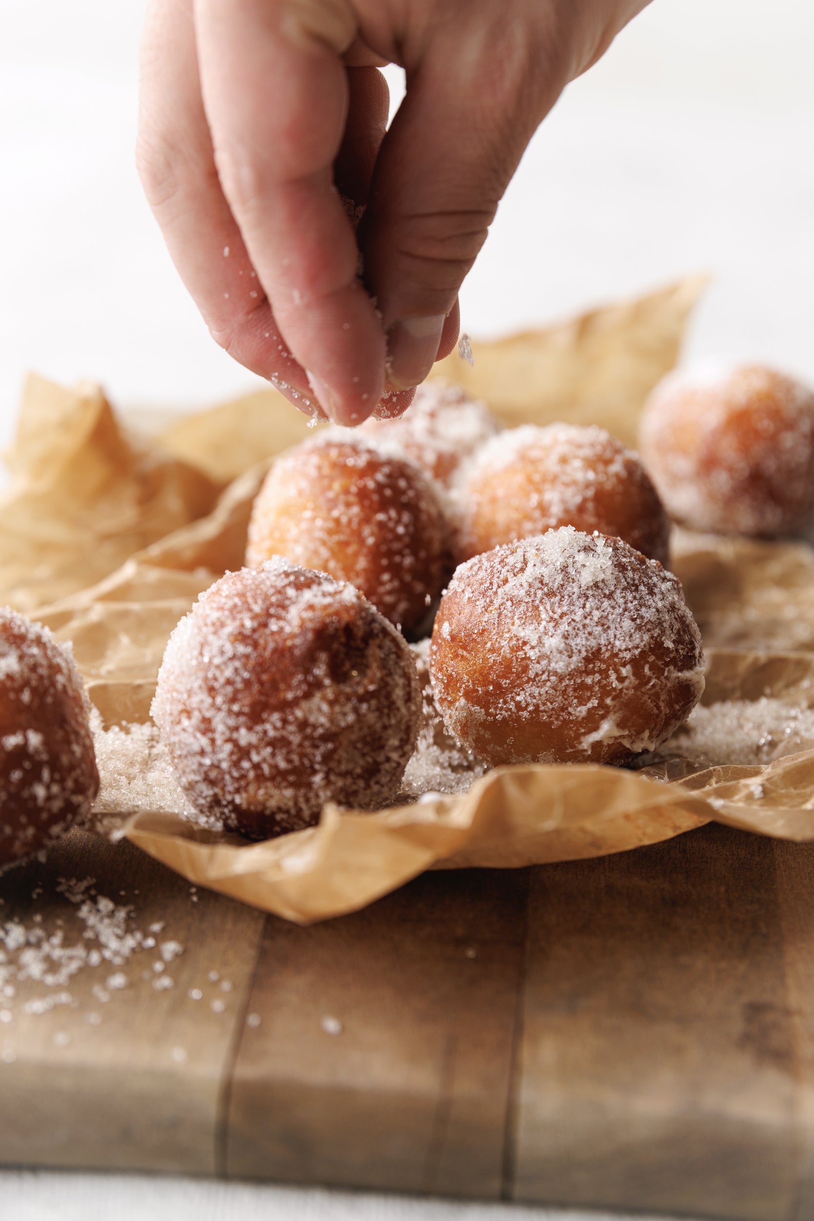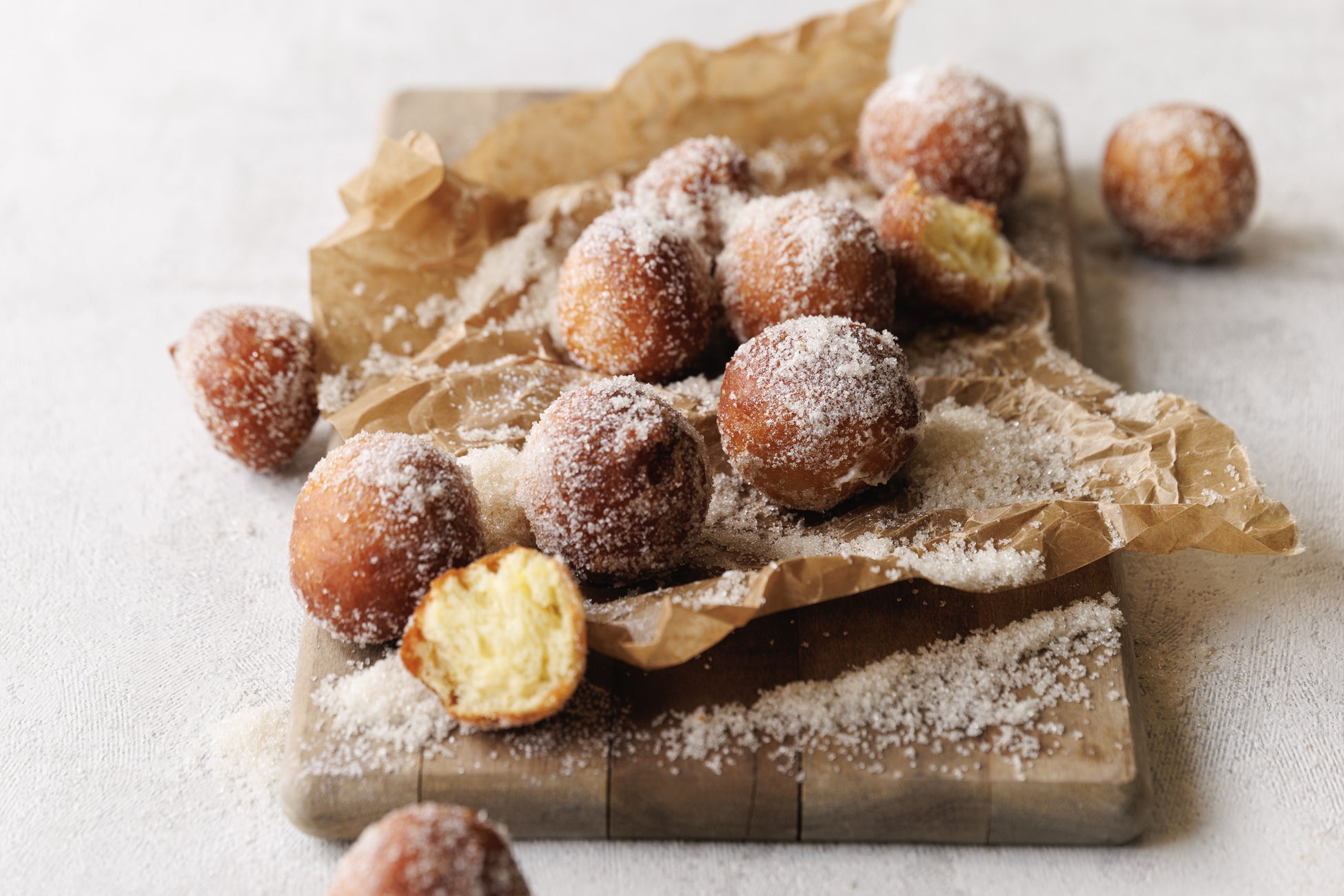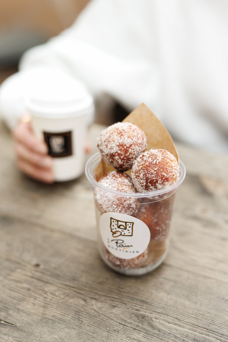 食べ歩きにも便利な一口サイズのドーナツは、全て店内で手作り。ベルギーの伝統的なレシピをベースに何度も試作を重ねて完成させました。一晩かけて低温でゆっくり発酵させた生地は、小麦の風味を存分に楽しめます。温度を変えて揚げることで表面はカリッと中はふわっと仕上げました。最後にオーガニックシュガーをたっぷりとまぶし、ザクザク食感もお楽しみいただけます。