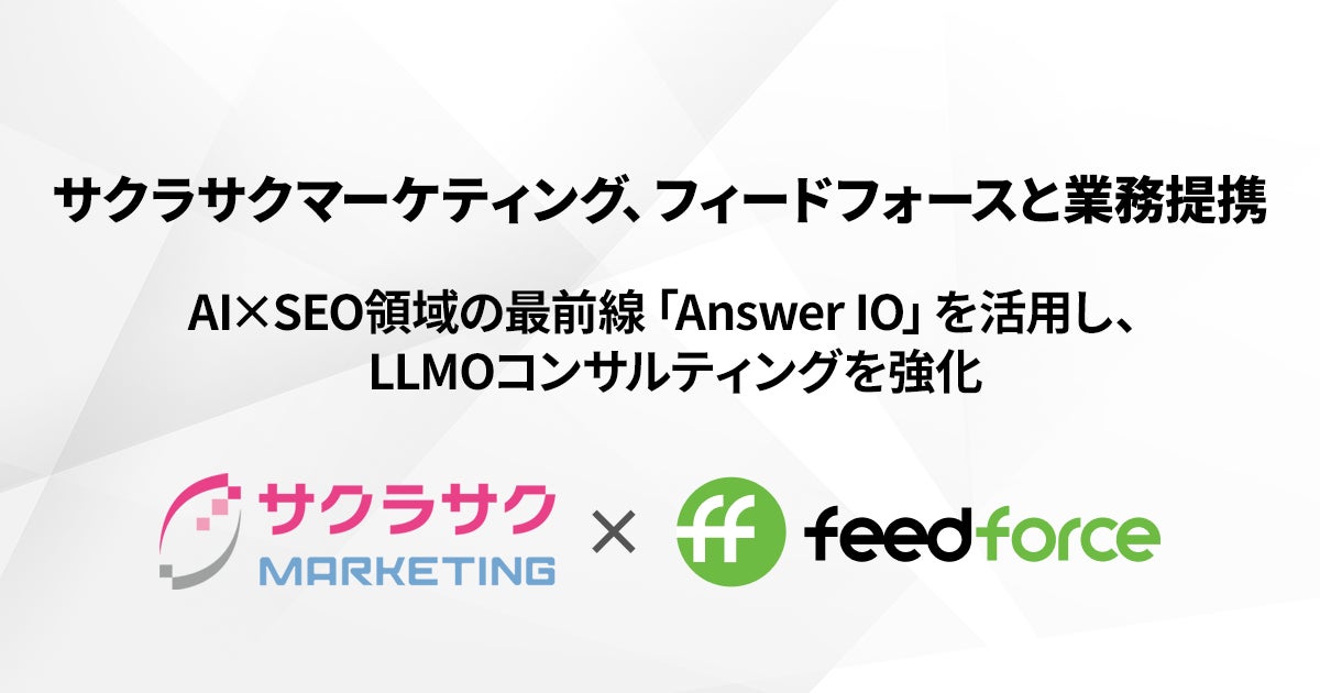 サクラサクマーケティング、フィードフォースと業務提携|AI×SEO領域の最前線「Answer IO」を活用し、LLMOコンサルティングを強化