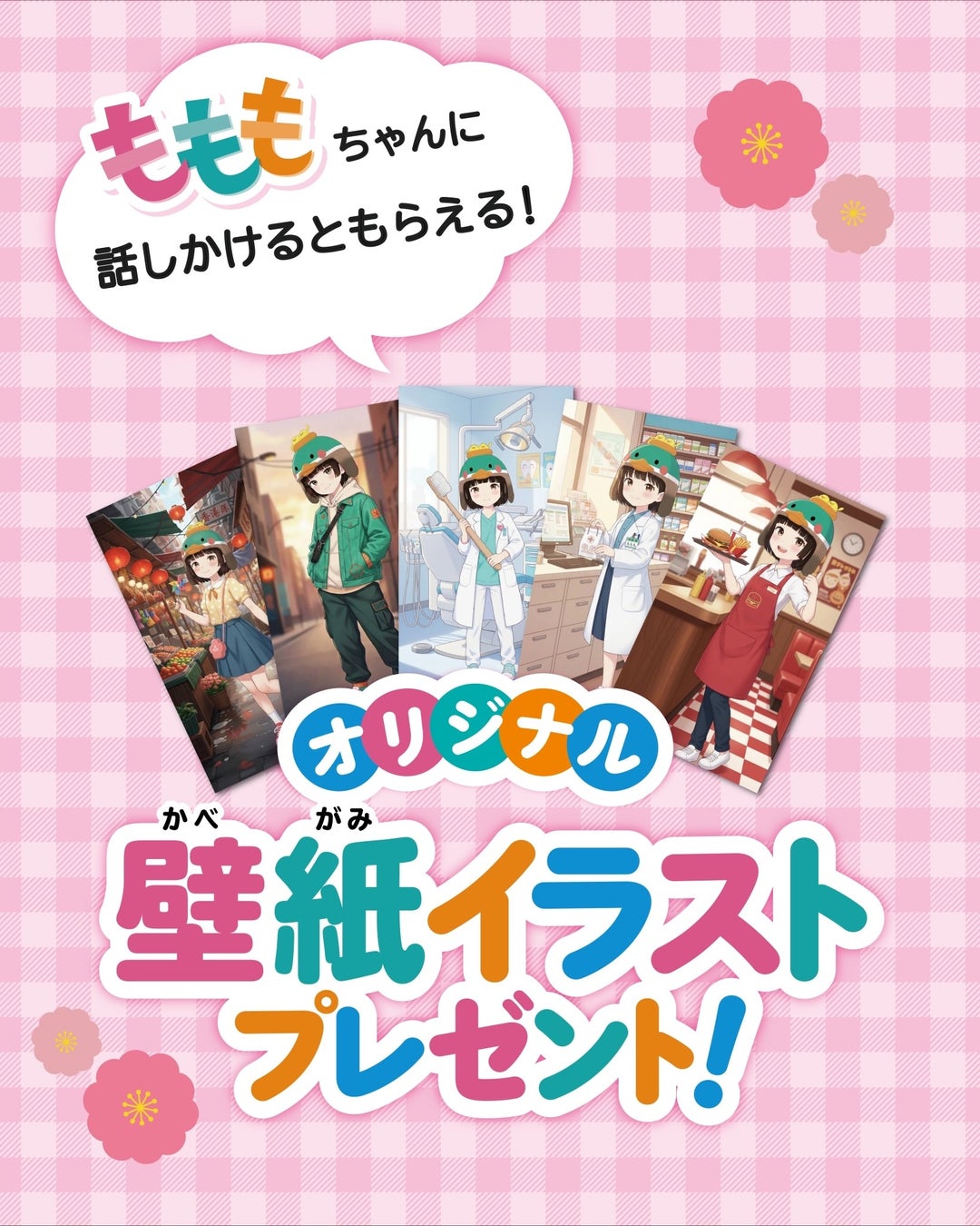 ◆お店オリジナルの壁紙イラストがもらえる!?『もももちゃん』に話かけて、全部集めよう!
