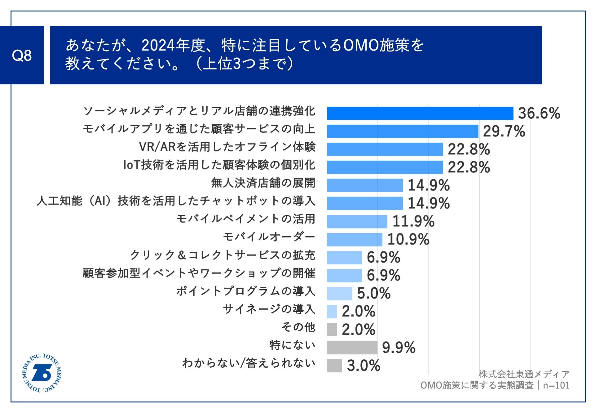Q8:あなたが、2024年度、特に注目しているOMO施策を教えてください。(上位3つまで)