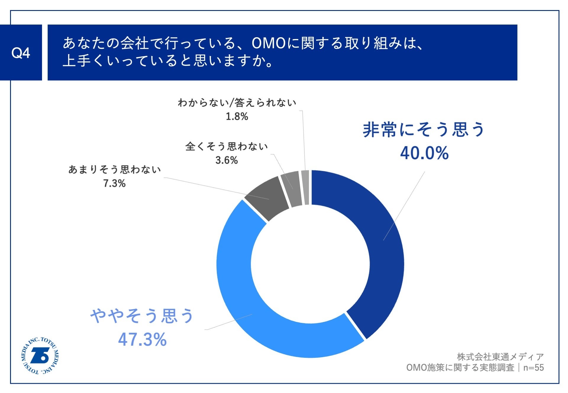 Q4:Q1で「継続的な取り組みを行っている」「取り組みを開始したばかり」と回答した方に、あなたの会社で行っている、OMOに関する取り組みは、上手くいっていると思いますか。