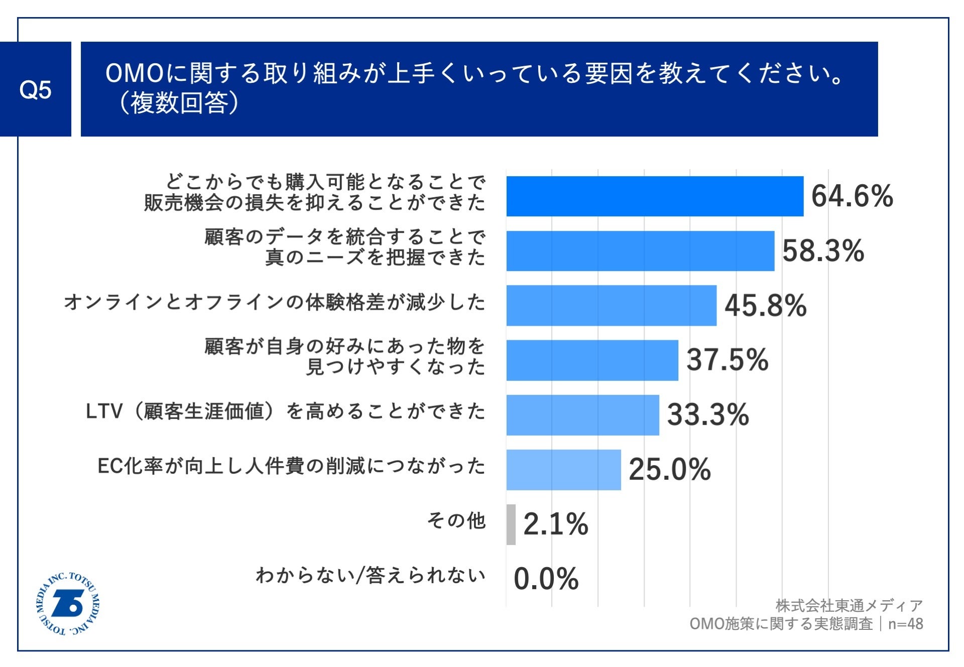 Q5:Q4で「非常にそう思う」「ややそう思う」と回答した方に、OMOに関する取り組みが上手くいっている要因を教えてください。(複数回答)