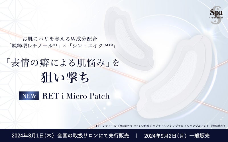 株式会社ウェーブコーポレーション(本社:大阪府大阪市、代表取締役:荒井裕一)は主要ブランドである「Spa treatment (スパトリートメント) 」から、『スパトリートメント RET iマイクロパッチ』を2024年8月1日(木)より新発売いたします。