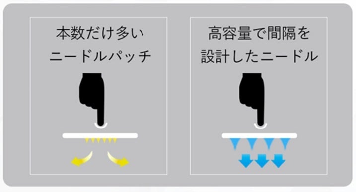 ※本数の多さやニードルの間隔を正しく設計してないと肌に浸透*² しにくい原因に。