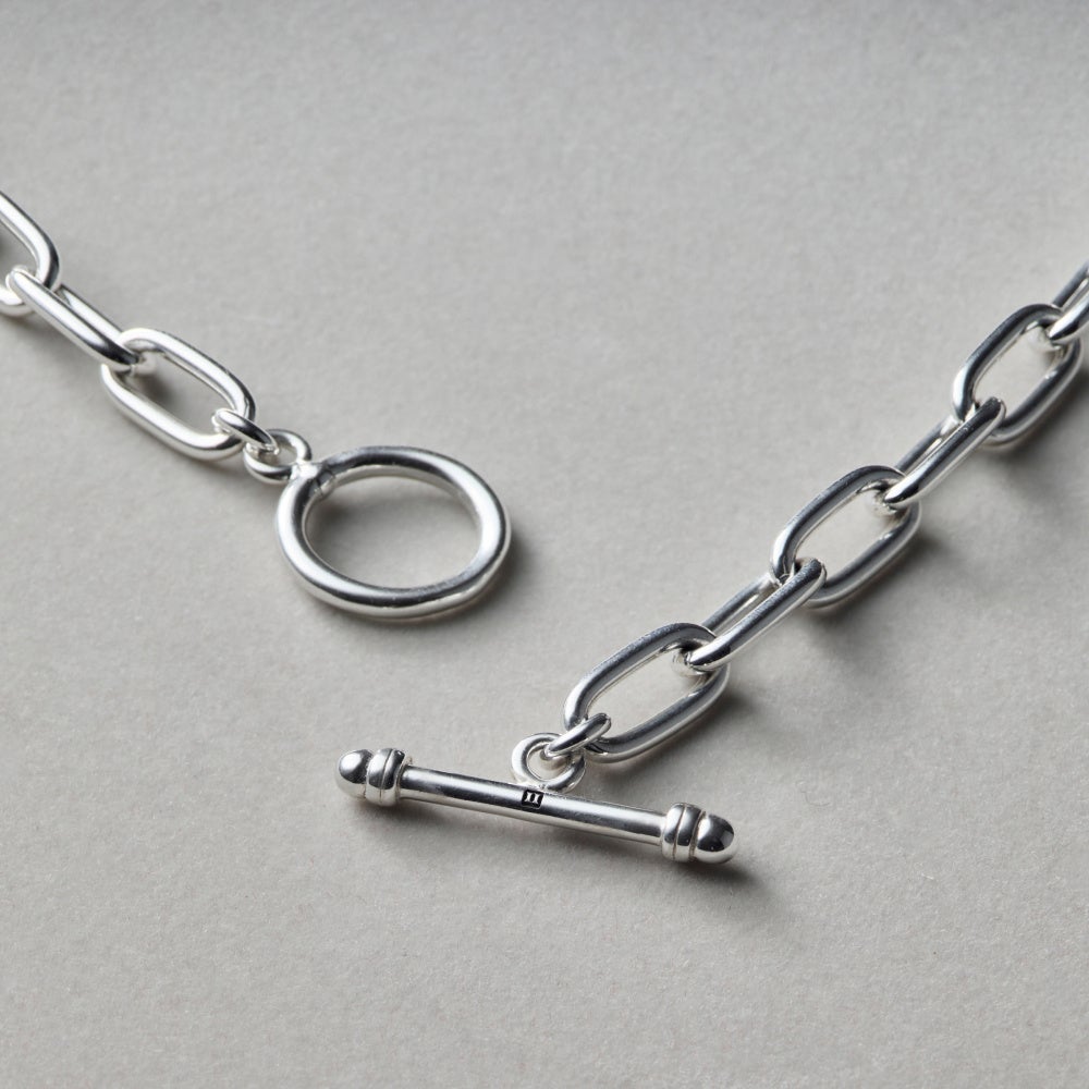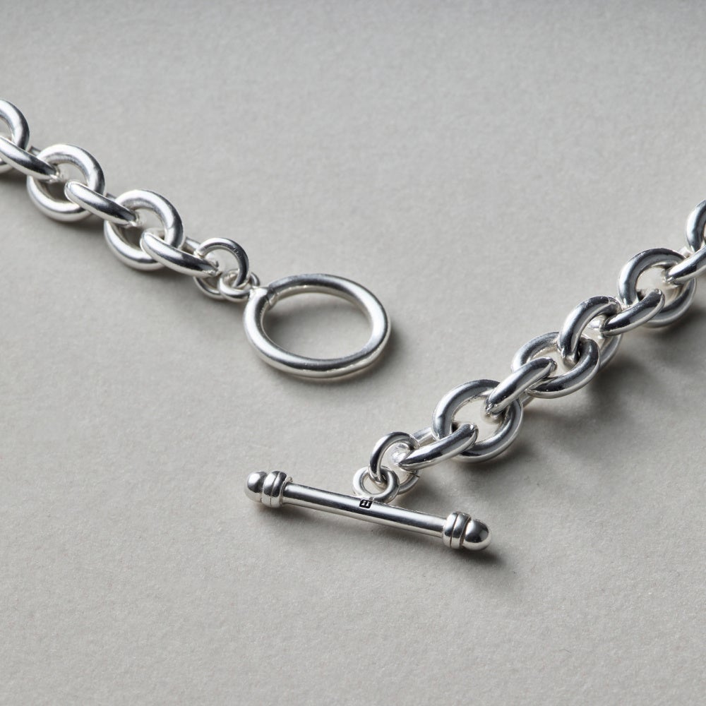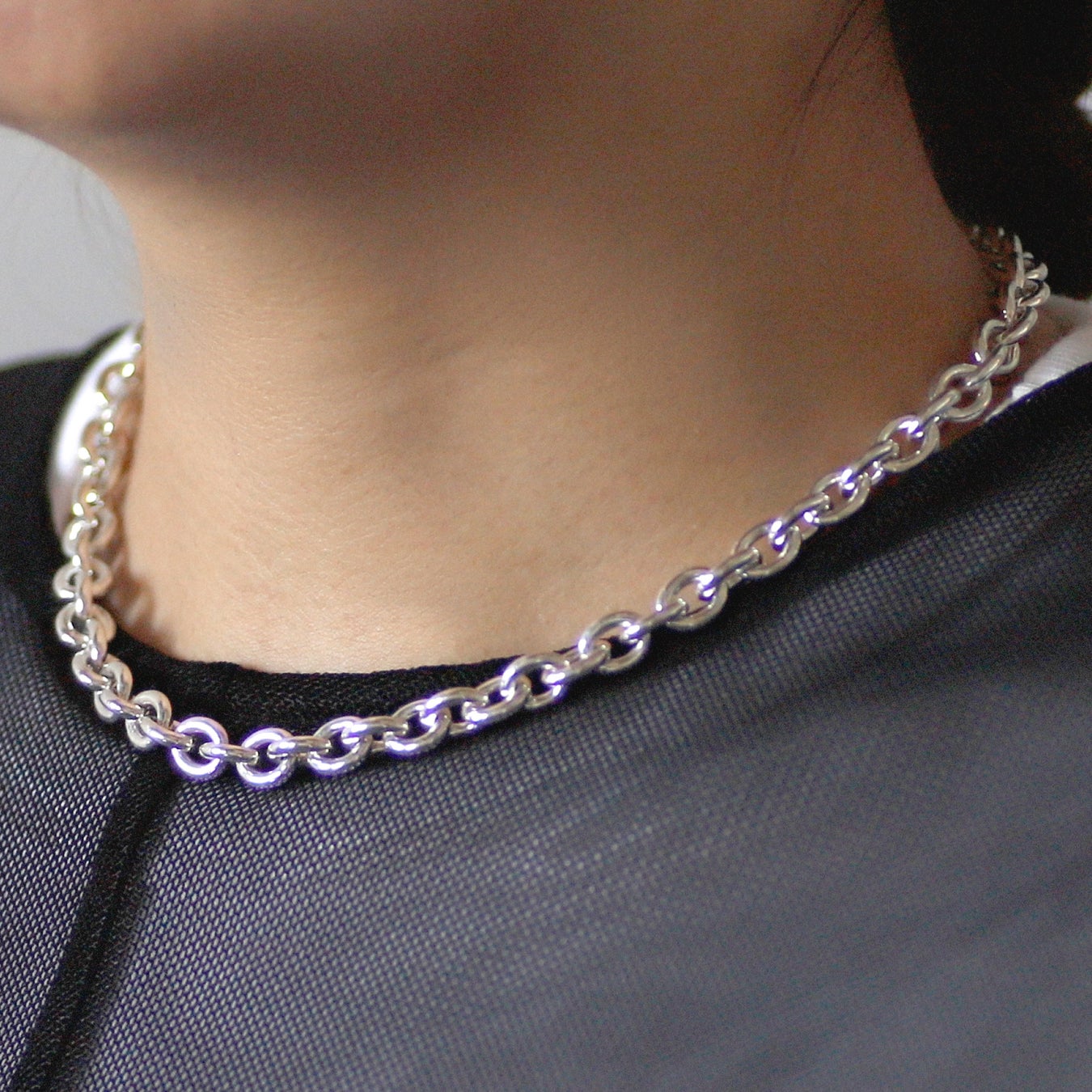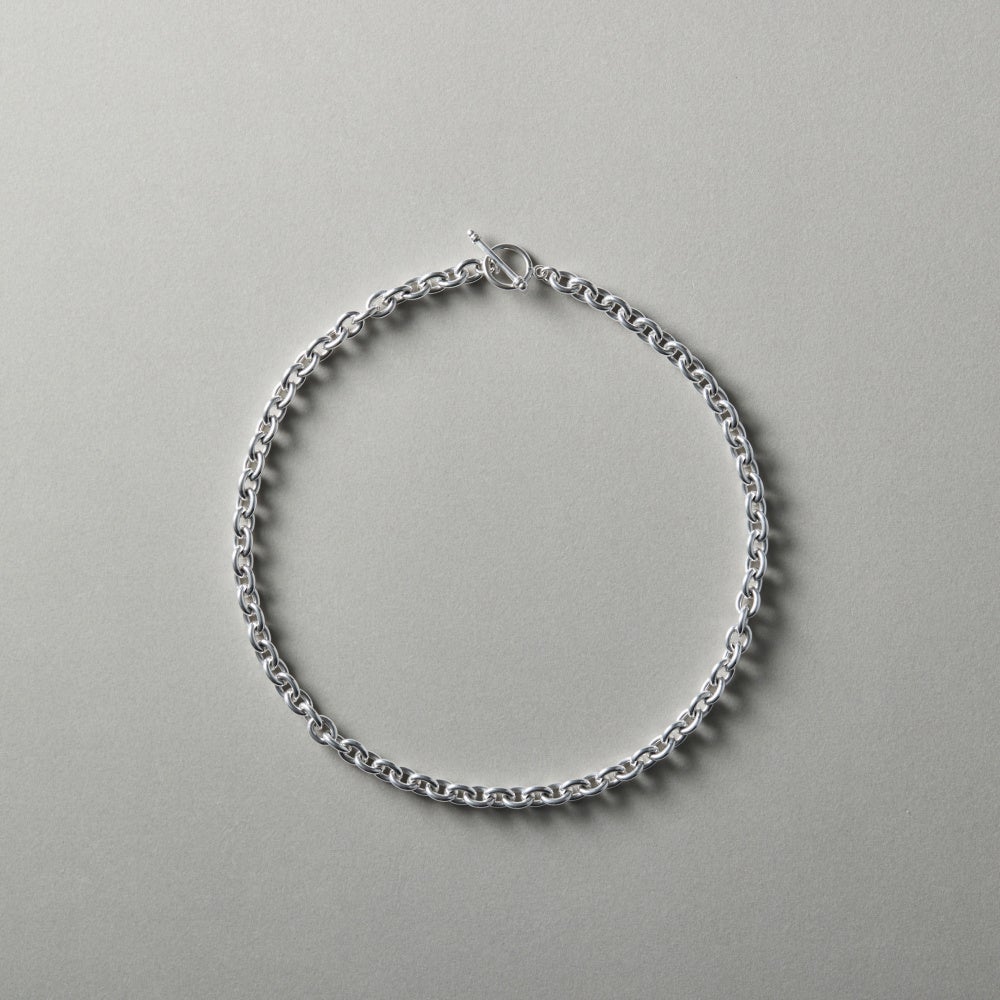 ユニセックスで使っていただける肌馴染みのいいケーブルネックレス。ボリューム感がありながら首元にフィットする軽やかな着け心地が魅力です。日々のコーディネイトにも自然と馴染むミニマルなデザインなので末長くご愛用いただけます。エンドパーツにはtoo:のマークが刻まれています。フロントにマンテルを見せてもポイントになります。