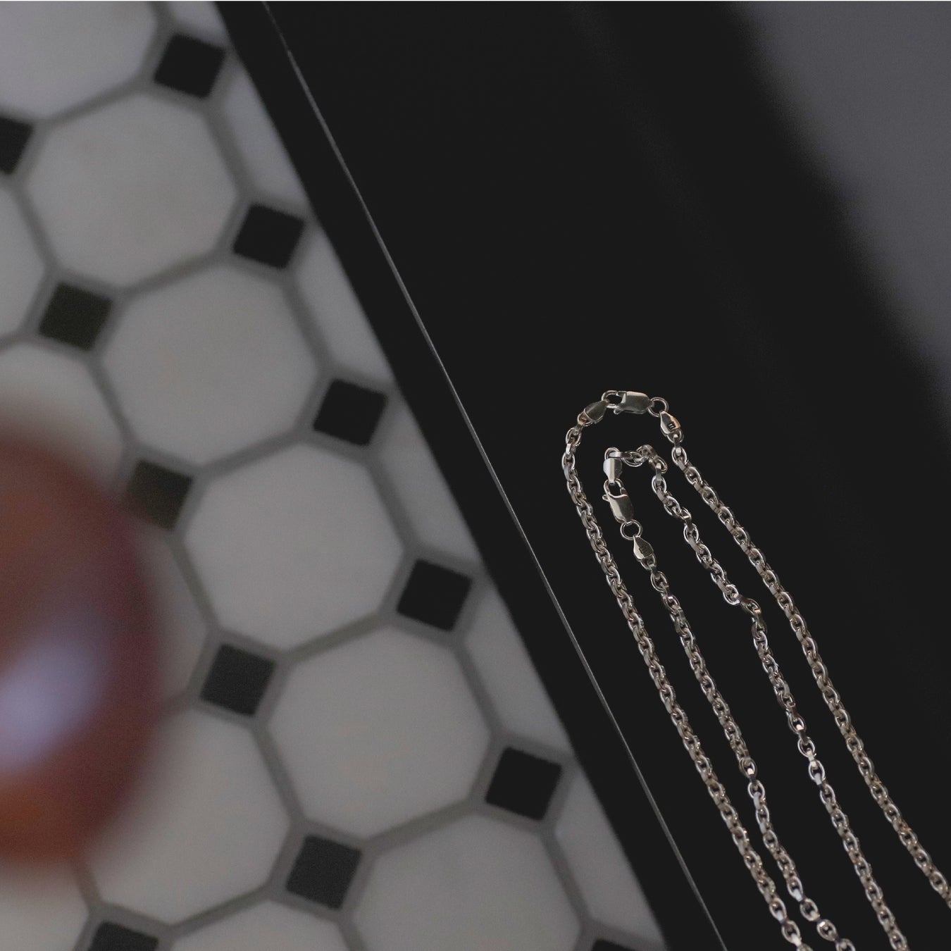 丸みのある小ぶりなアズキチェーンで仕上げたロープネックレス。男女を問わずユニセックスで使っていただけるニュートラルなデザインが魅力です。ミニマムなデザインは肌馴染みがよく末長くご愛用いただけます。エンドパーツにはtoo:のマークが刻まれています。
