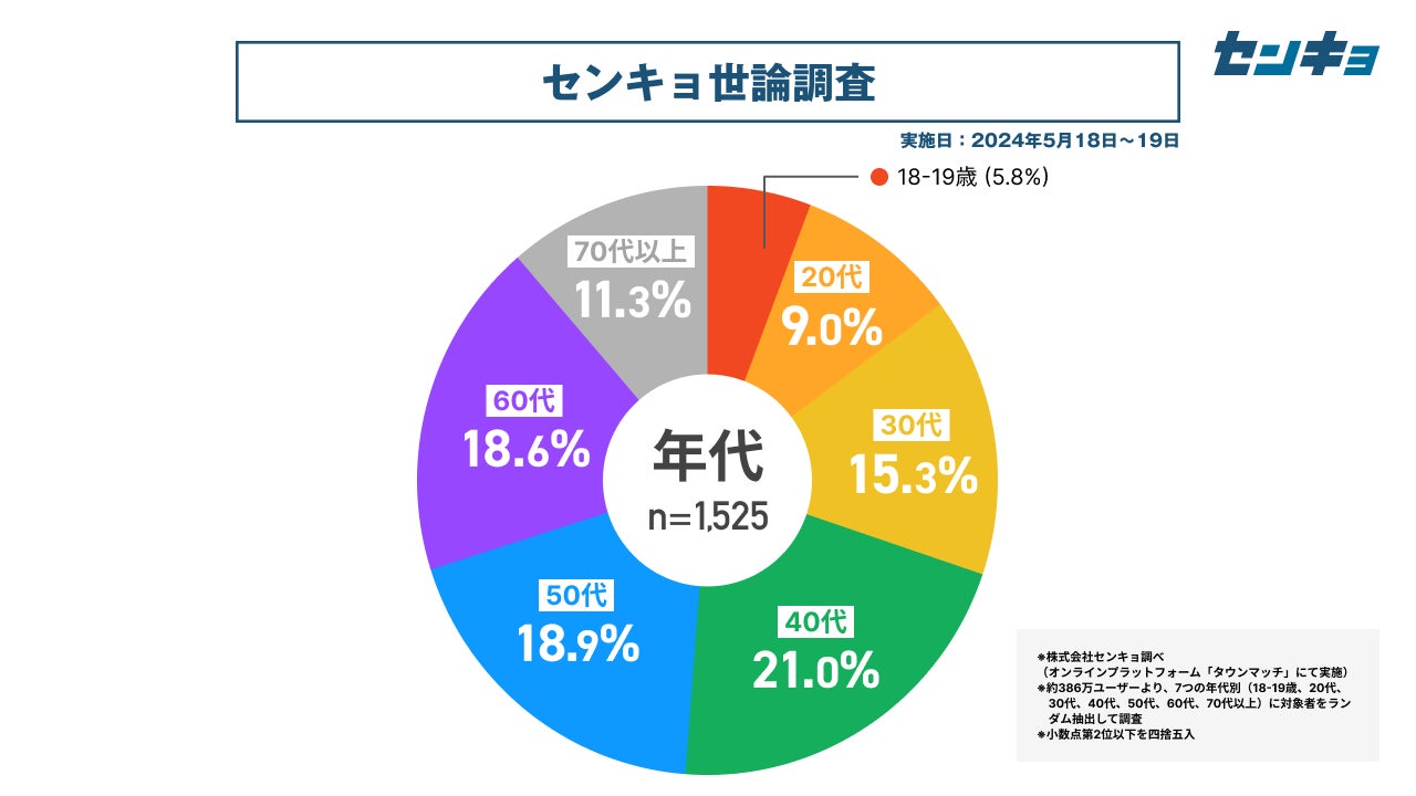 なお、調査結果については、①「タウンマッチ」が全国の各市区町村に人口比で概ね2~4%のユーザーを抱えていて、その分布が実際の地域別人口比と大きく変わらないこと、②できるだけ結果の透明性を守り、見ていただいた皆様に評価を委ねたいという考えから、ありのままを公開しています。弊社の運営する「タウンマッチ」では、従来の世論調査ではなかなかサンプル数の確保自体が難しかった10代20代などの若年層についても、他の年代と遜色ないサンプル数の確保が可能となっています。このため、弊社の調査は「より現実に近い」結果を提供できるポテンシャルがあると考えております。