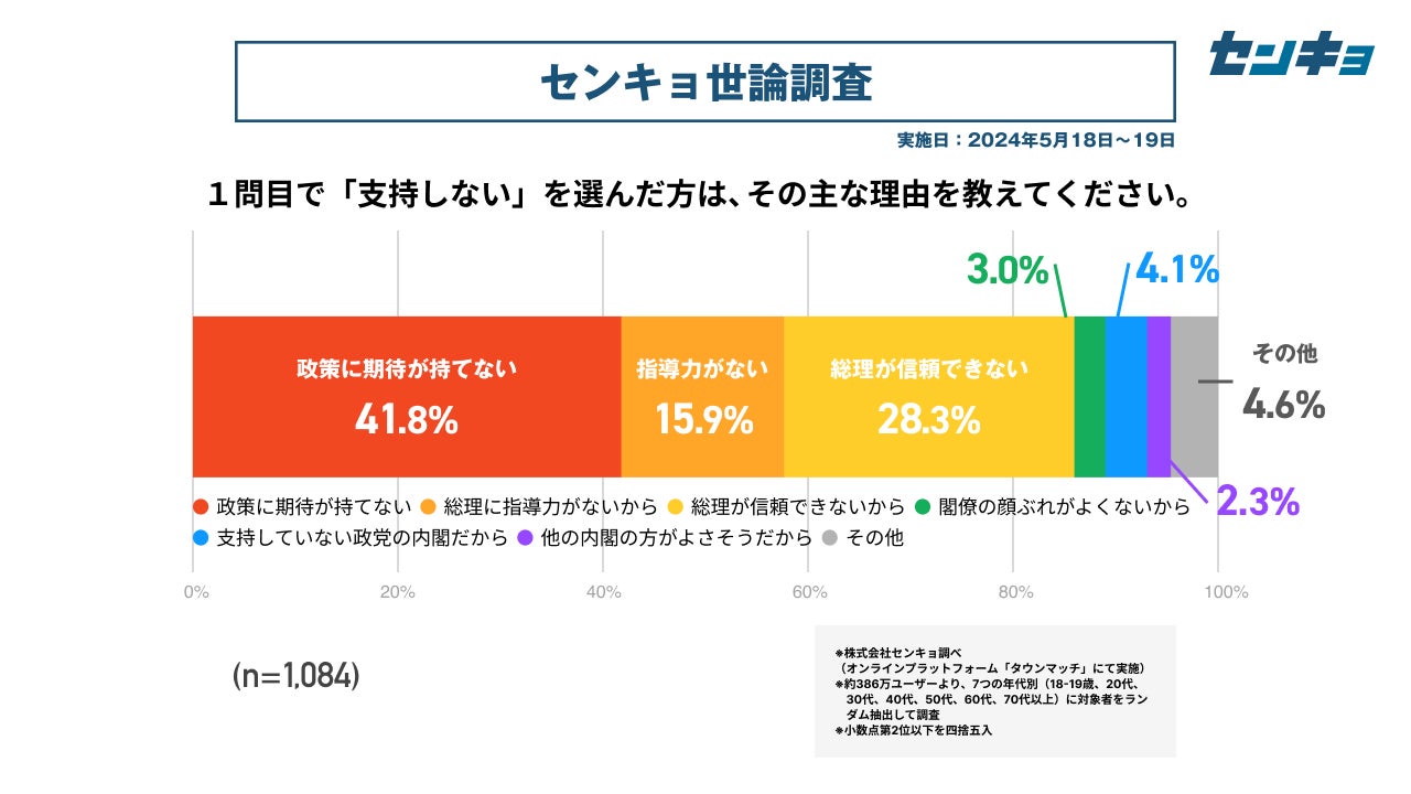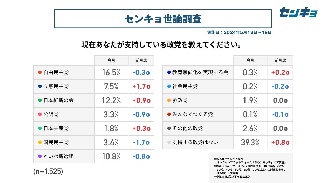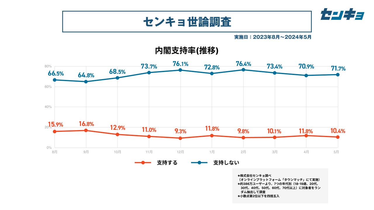 【株式会社センキョ】タウンマッチ定期世論調査、5月の内閣支持率は10.4%