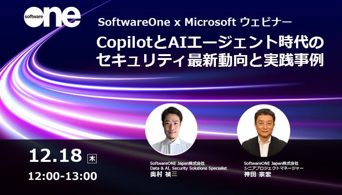 SoftwareONE Japan株式会社(本社:東京都港区、代表:長谷川 憲司/エルプ・ラファエル・ヘルマン)は、来たる2025年12月18日(木)、ITシステム担当者様向けオンラインウェビナー「CopilotとAIエージェント時代のセキュリティ最新動向と実践事例」を、日本マイクロソフト株式会社と共催致します。
