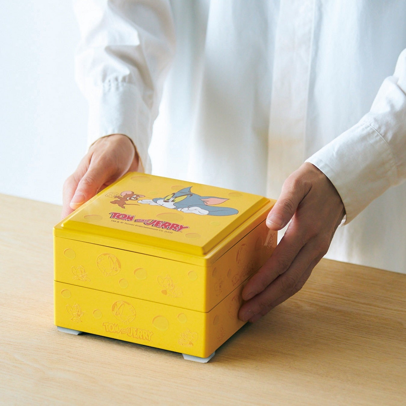 「おせち・二段重『トムとジェリー』」は、チーズをイメージしオリジナルデザインの重箱でポップな世界観を表現。重箱の中には驚いたトムの表情が印象的なチーズハンバーグなど、キャラクター食材が目を引く楽しい内容に!8月26日(金)よりベルメゾンネット(https://www.bellemaison.jp/)にて予約販売が開始となる。
