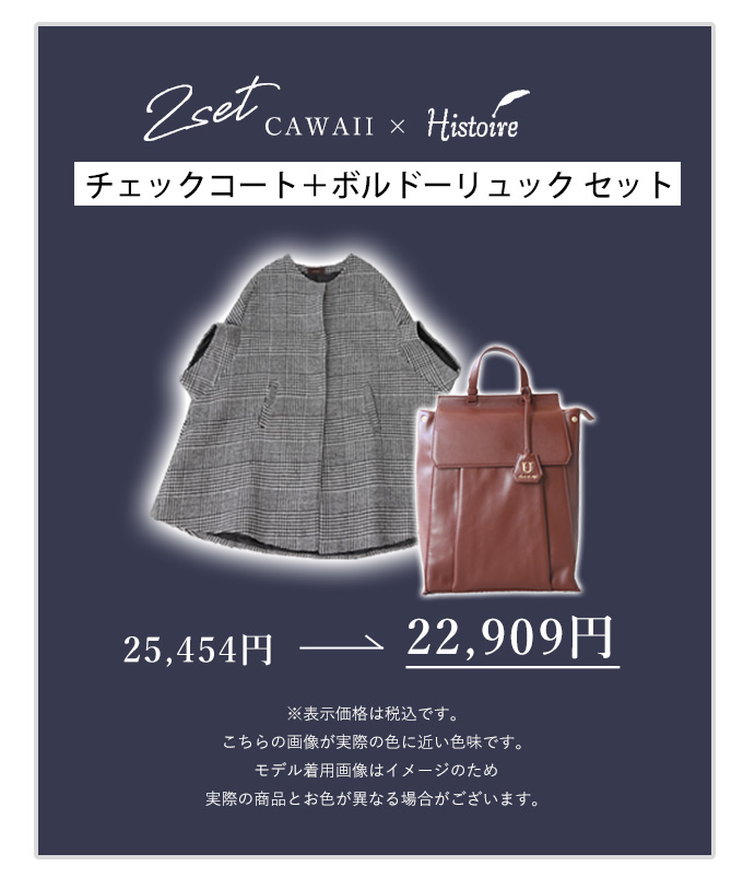 商品名:クラシカルにお出かけ「街コーデ」チェックコート&ボルドーリュックセット