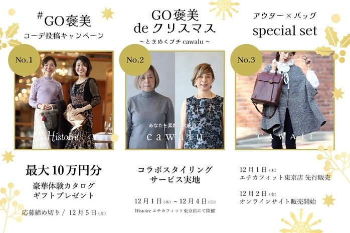 「人々の毎日に、幸せや歓びや感動の溢れる世界をつくる。」を企業コンセプトに掲げる株式会社ワンピース(本社:兵庫県加古川市、代表取締役:久本和明、以下ワンピース)は、2022年11月23日(水)より、他にはないカワイイが見つかるお店『CAWAII(カワイイ)』と劇的に変わる大変身サロン『Cawalu(カワル)』と、ブランド「U(ユー)」を展開するレディースバッグ・株式会社Histoire(イストワール、以下 Histoire)の3ブランドでコラボレーションした≪GO褒美 3大企画≫を始動いたしましたことをお知らせいたします。