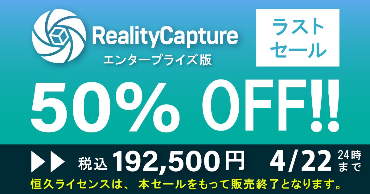 ※本セールをもって、RealityCapture の無期限無制限の恒久ライセンスであるエンタープライズ版は、新規販売が終了となります。本セールはエンタープライズ版ご入手の最後の機会となります。