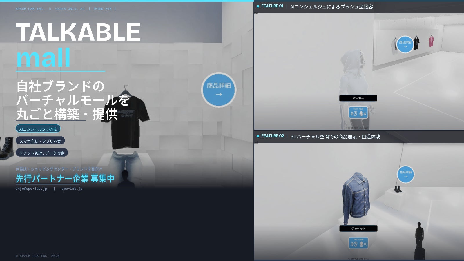 自社ブランドの3Dバーチャルモールを丸ごと構築。スペースラボ、AIコンシェルジュ「THINK EYE」搭載の「TALKABLE mall」システムを百貨店・商業施設・ブランド企業向けに提供開始