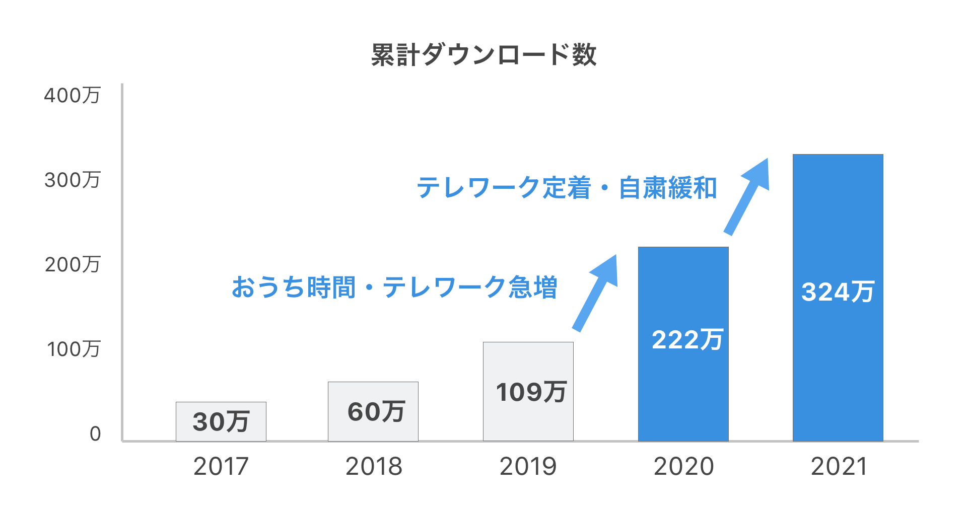 ウィズコロナ時代に寄り添うアプリ会社、おうち時間・テレワーク「急増 → 定着」で2年連続100万ダウンロード達成
