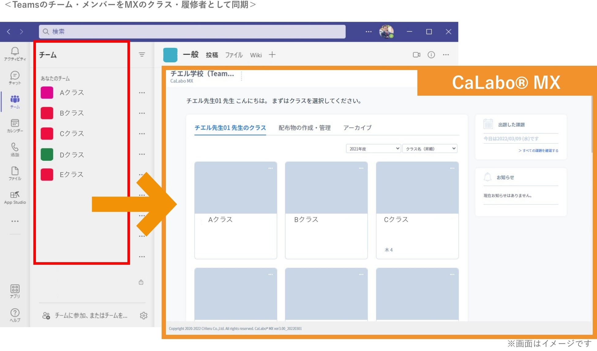 Point3 Teams内のチームやメンバーを『CaLabo®️ MX』のクラス・履修者として同期