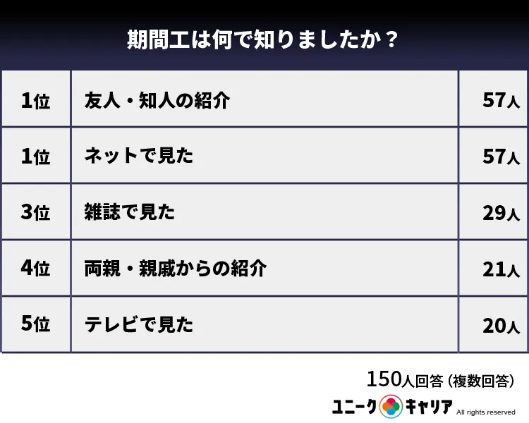 ・期間工の存在を知ったのはネットや友人の紹介が半数以上