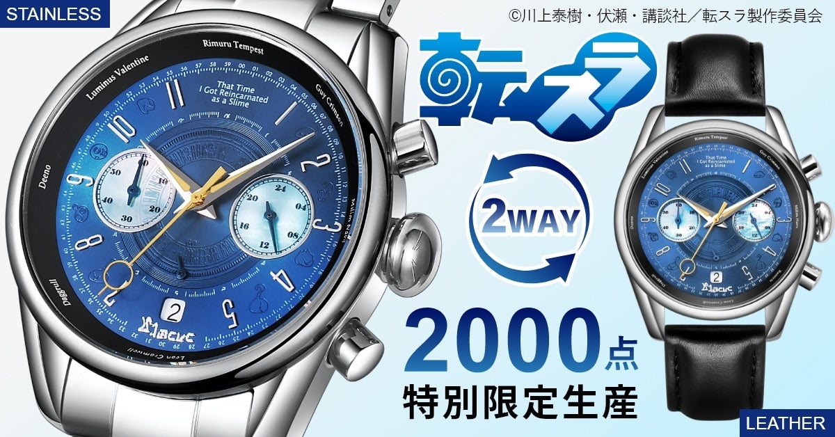 この度、TVアニメ『転生したらスライムだった件』の世界観を纏ったスペシャルアイテムとして、魔王リムルとスライムリムルをモチーフにした「智慧之王 (ラファエル) クロノグラフ腕時計」、「スライムリムル&しっぽ付き本革財布」、そしてバリスティックナイロンを贅沢に使用した「2WAY仕様ミニリュック&スリングバッグ」の3アイテムを数量限定で発売いたします。