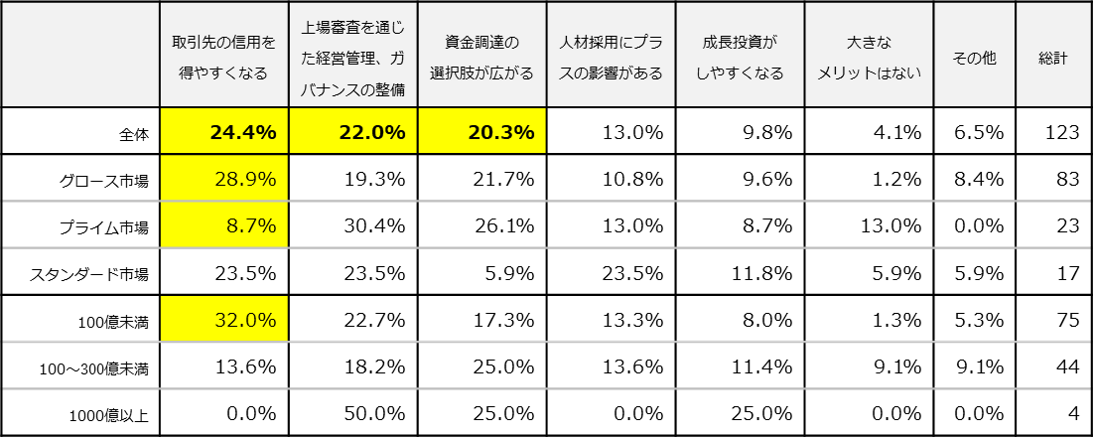 ▽日本は諸外国に比べて小型での上場が可能だと言われています。”早期”に上場することの最大のメリットについて、あなたの考えをお答えください。
