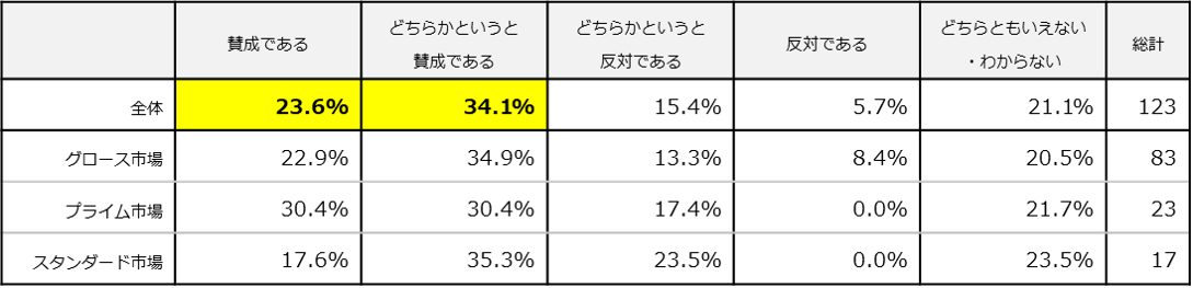 「新規上場基準の引き上げ検討について、あなたの考えをお答えください」という質問に対し、賛成(賛成である、どちらかというと賛成である)が57.7%に及ぶことが分かった。