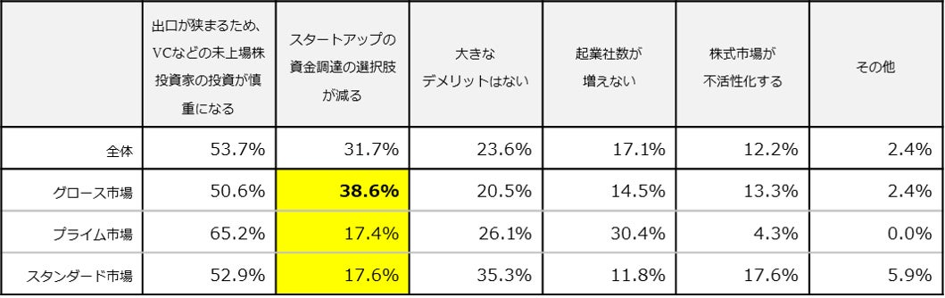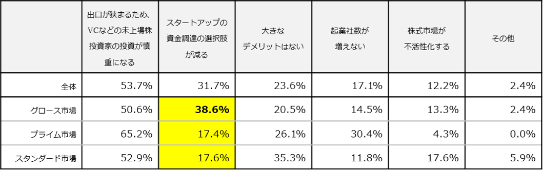 ⑥【新規上場基準の引き上げが行われた場合のデメリット】