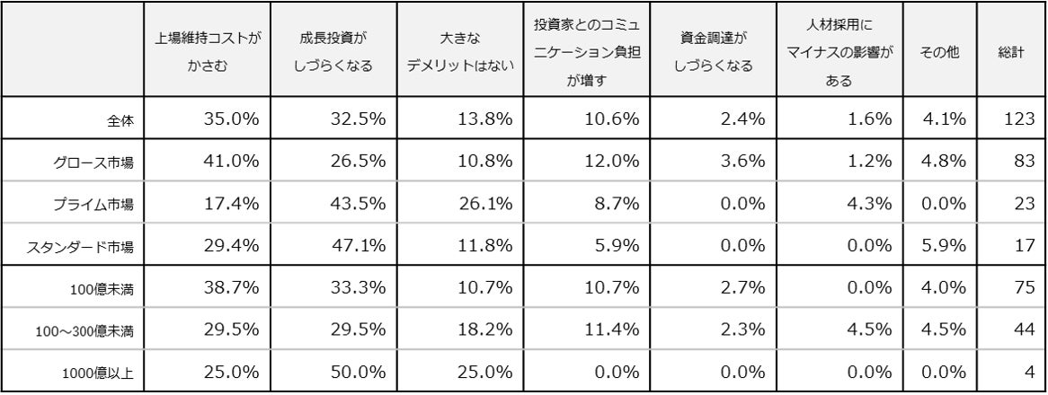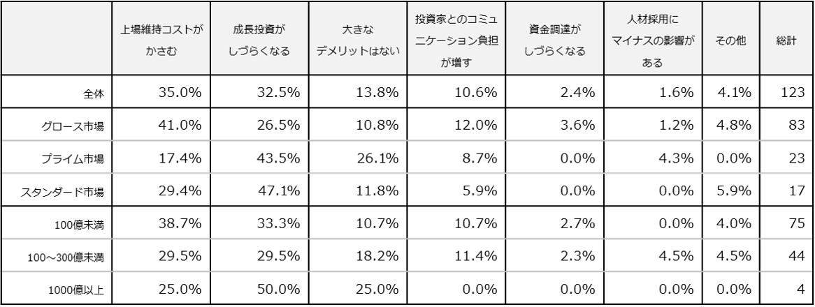 グロース市場上場企業では「上場維持コストがかさむ」が最大の41%