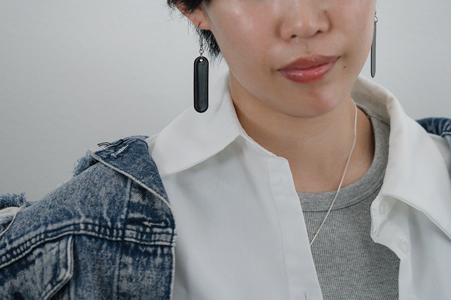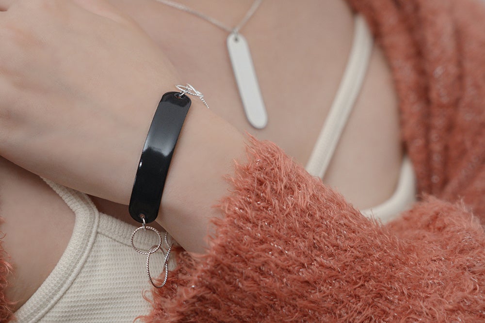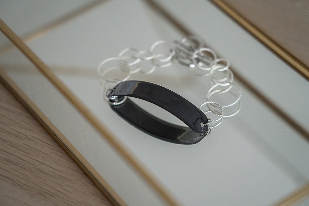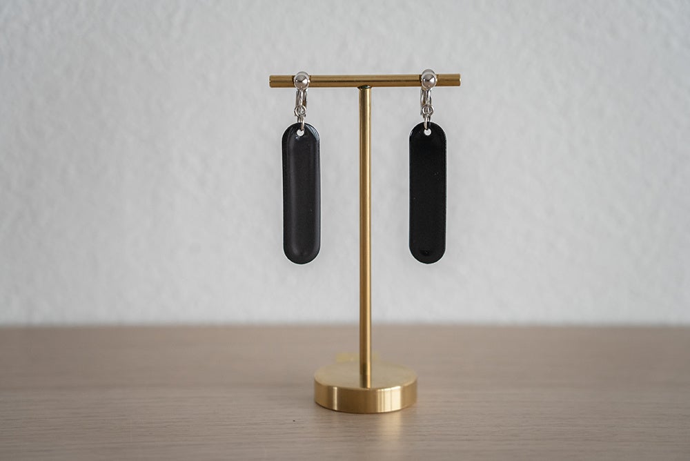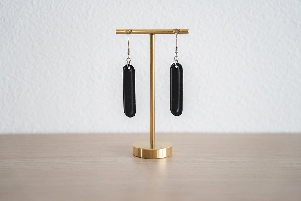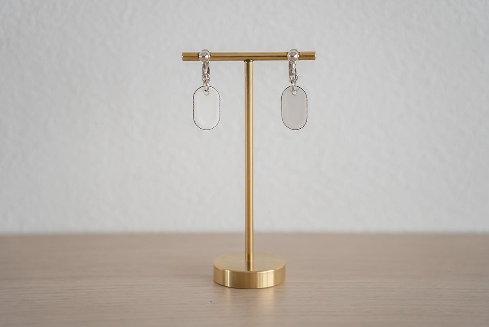 「焼き切れ」を活かし、デザインはシンプルにし、カラーはホワイトとブラックの2色展開。ピアス、イヤリング、ネックレス、ブレスレットの4種類を展開します。さらにピアス、チェーンの種類やトップ部分の琺瑯サイズで全20種類展開に。
