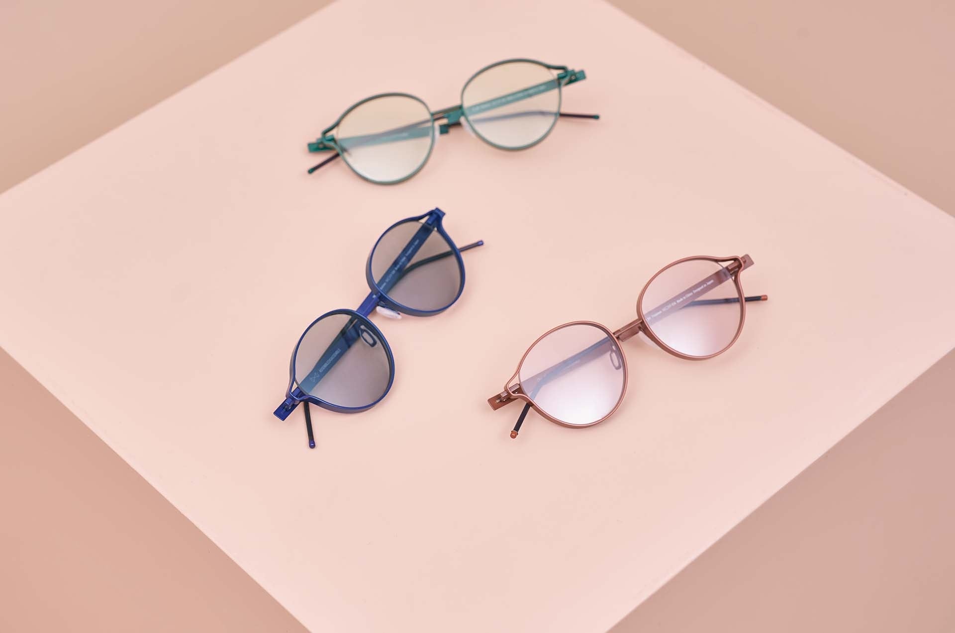 TWOFACE(トゥーフェイス)はスッキリとした表情と、無骨な物質感によって引き出されるキャラクター、その二面性が特徴となるアイウエアです。正面はフレームに使用しているメタルシートの小口を見せる線のデザイン。側面は6mmあるフレームの幅を強調する面のデザイン。メタルシートの物質感を引き出すために“折る”“曲げる”などの表現を出来るだけ最小限におさえ、シンプルに設計しています。また、フレームと肢の関係を水平垂直にデザインすることで生まれた1stプロダクト・ラウンドシェイプの垂直カットのレンズ形状もこのプロダクトの特徴です。2ndプロダクトとしてボストンシェイプを発表しました。