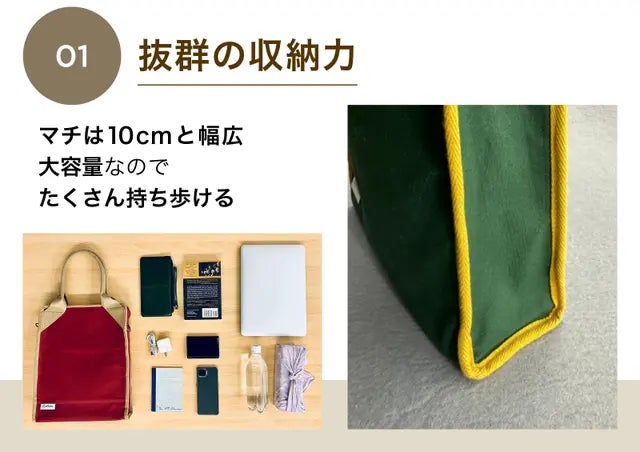ドロップイントートバッグは、まず、その「サイズ感の常識」に着目しました。