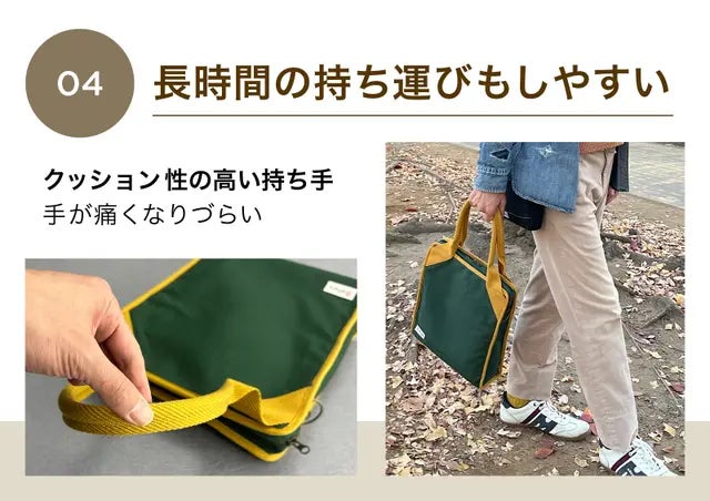 今回はバッグ生地に、国産帆布 「富士金梅」を採用し、持ち手とポイントには、独特の触感を持つ杉綾織テープを活用しました。