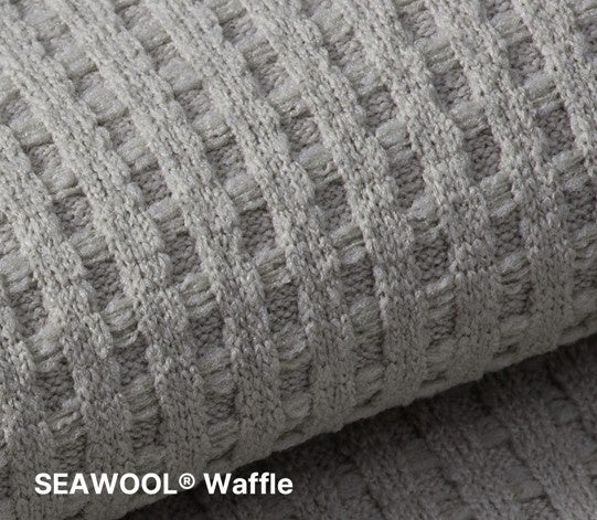 廃棄されたカキ殻の再利用素材 Seawool®(※1)と、植物由来の Sorona® (※2) を混紡したワッフル組織の生地で、次のような特長があります。