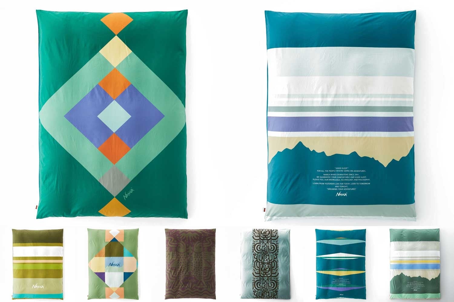 ダブルサイズ用の布団カバーも、NANGA の世界観を踏襲した8 種のオリジナル柄でご用意しました。