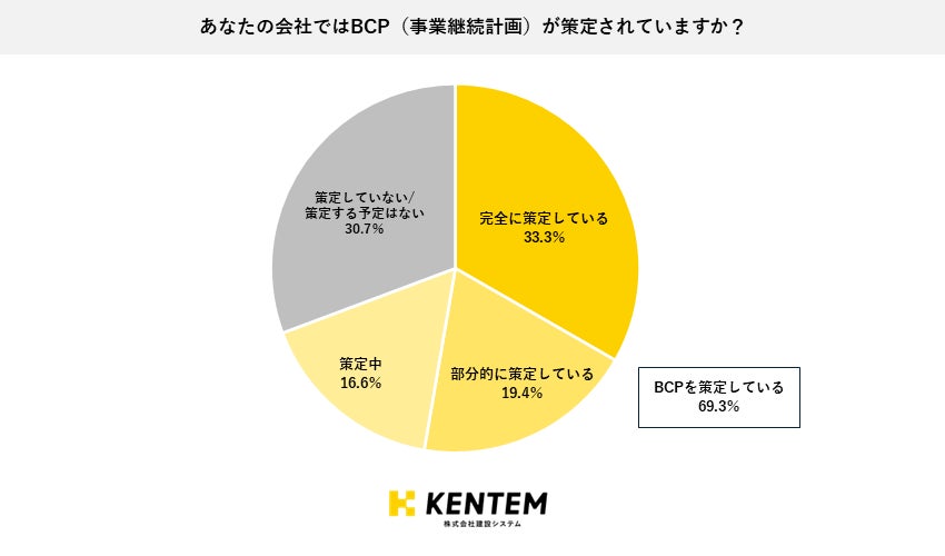 今回の調査で、建設会社のうち69.3%がBCP(事業継続計画)を策定していることが明らかになりました。