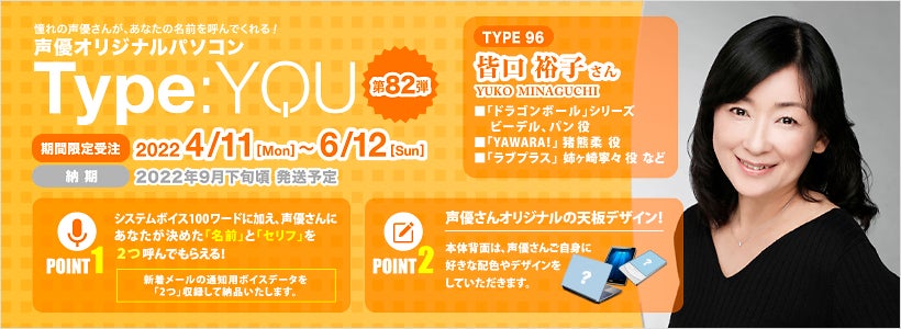 声優オリジナルパソコンに皆口裕子さんが登場!【Type:YOU -タイプユー-】第82弾は4月11日よりスマッシュコアで受注開始!
