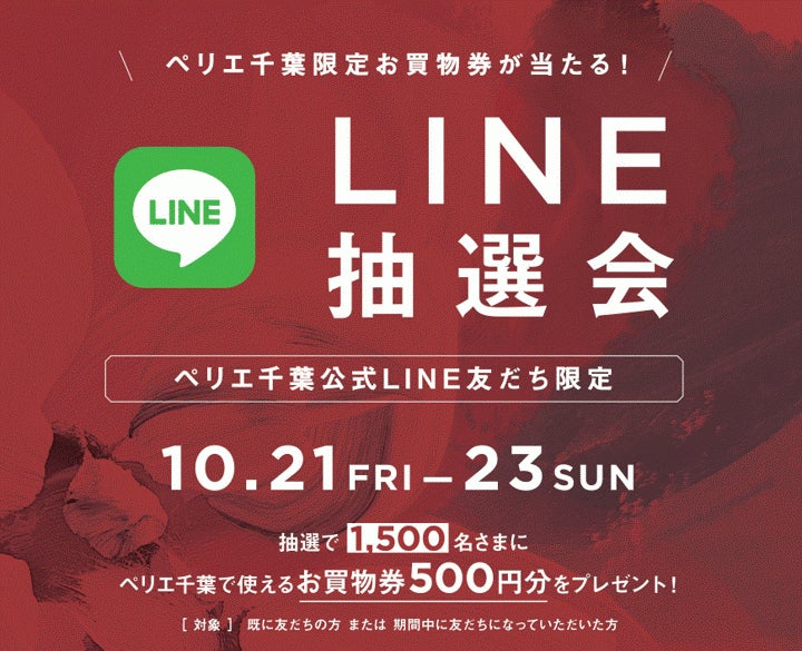 抽選で1,500名さまに500円分のペリエ千葉お買物券が当たるLINE 抽選会を実施します。