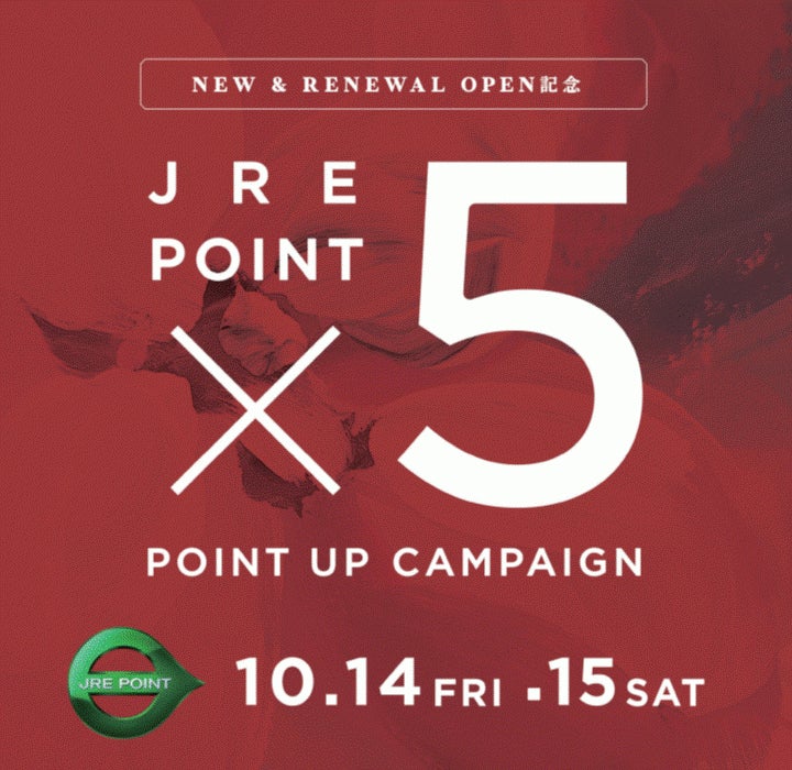 ペリエ千葉では、NEW OPEN を記念して、JRE POINT ポイントアップキャンペーン×5を全館で実施します。