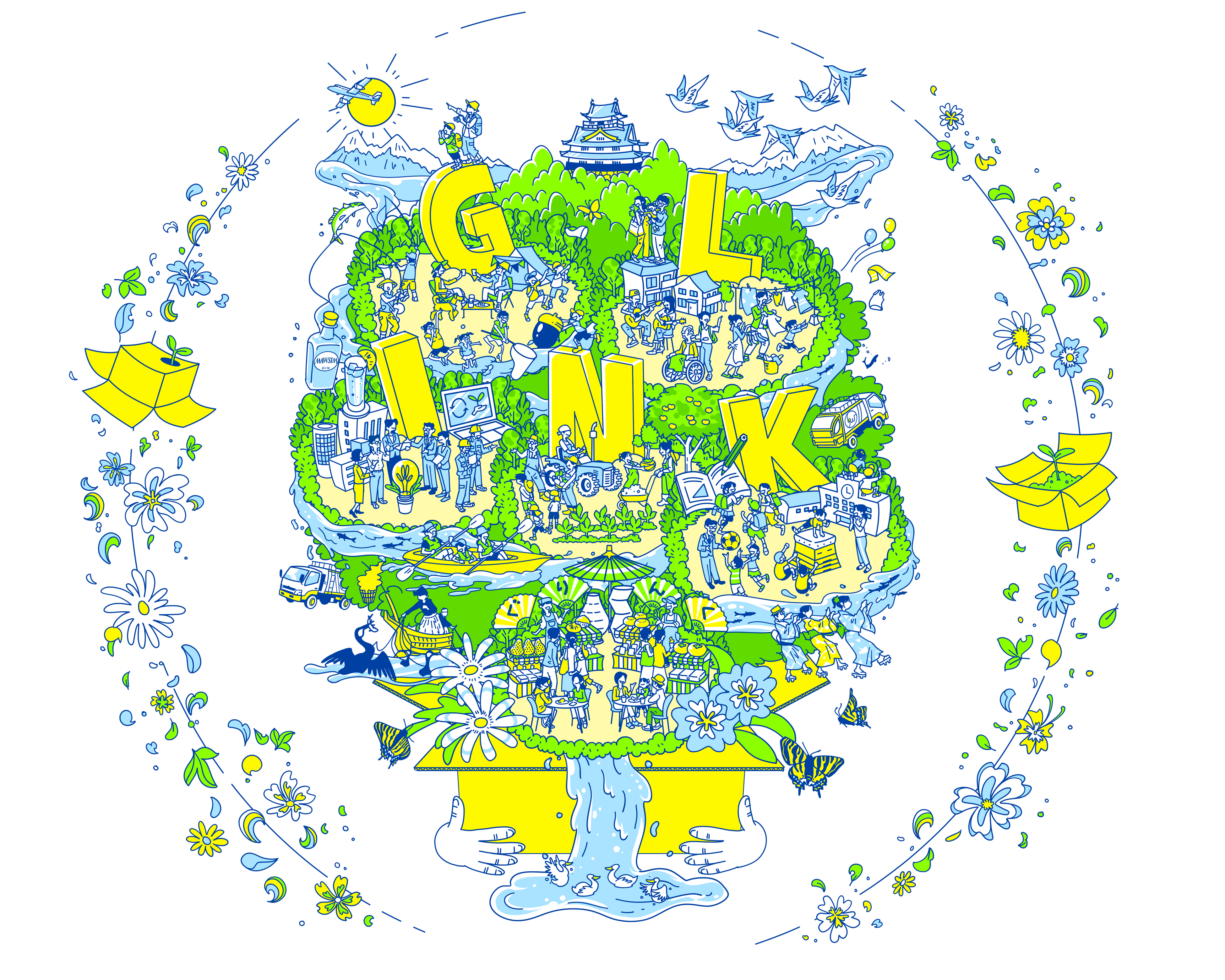 「ぐりんく|GLink」は、環境(Green)を通じて、岐阜(Gifu)を、元気(Genki)にするために、地元がつながる(Link)という想いが込められています。