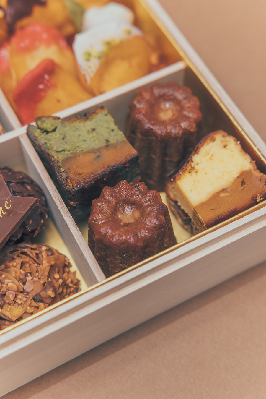 4. 蜜芋の焼きいもカヌレ:五つ星ホテル「ザ・ペニンシュラ東京」のスイートルームでも採用された、カヌレの本場も認める最高級カヌレ。カリッと仕上げた表面と、中に閉じ込めた濃厚な安納芋の焼きいものコントラストが、贅沢な味わいを生み出します。