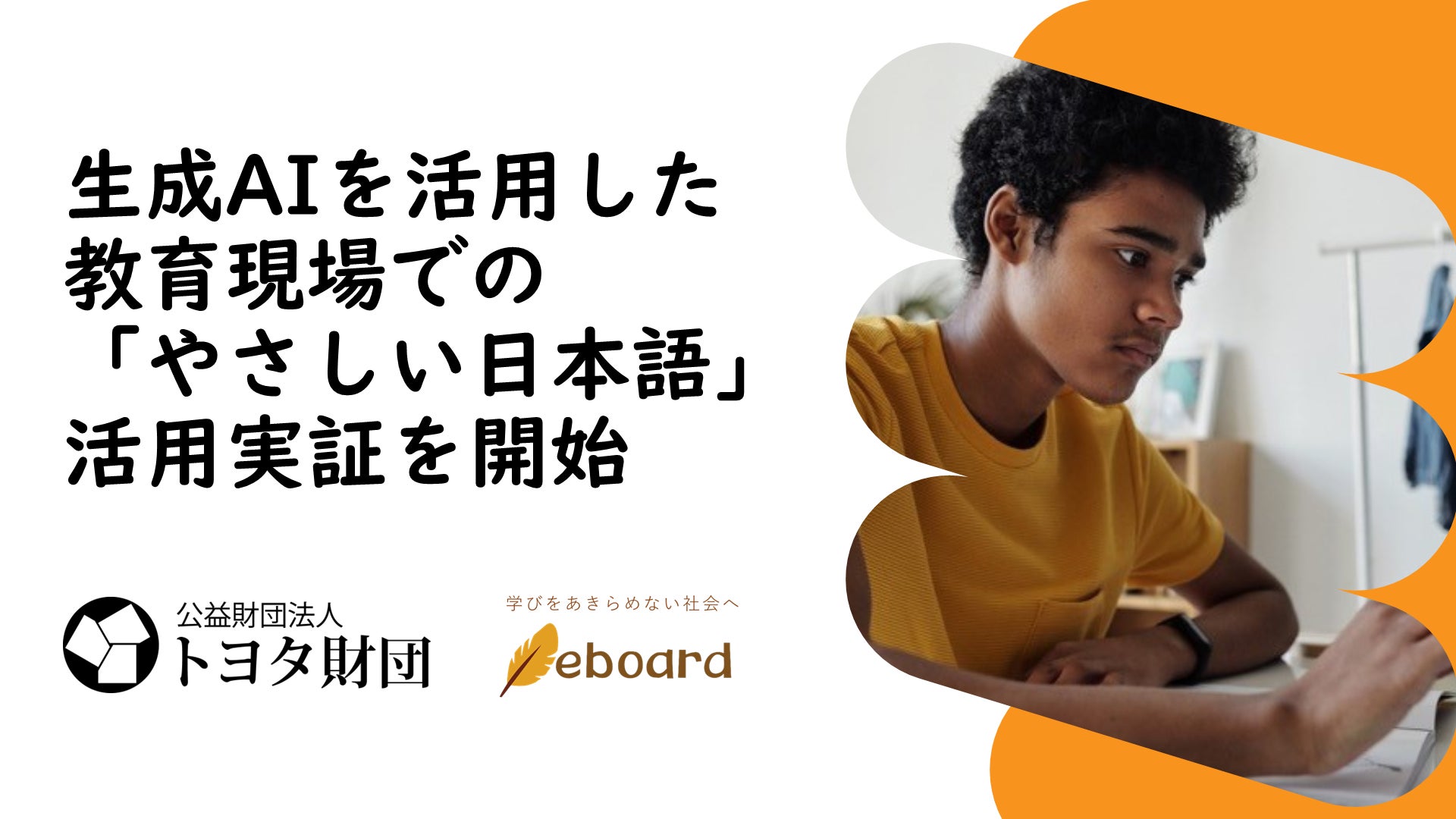 NPO法人eboard、トヨタ財団からの助成を受け、生成AIを活用した教育現場での「やさしい日本語」の活用実証を開始