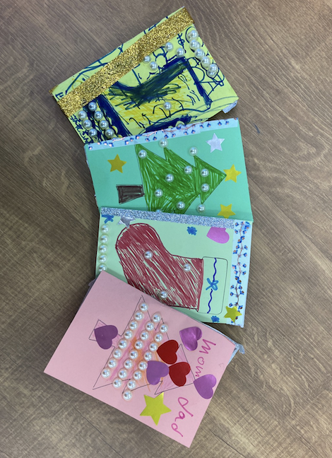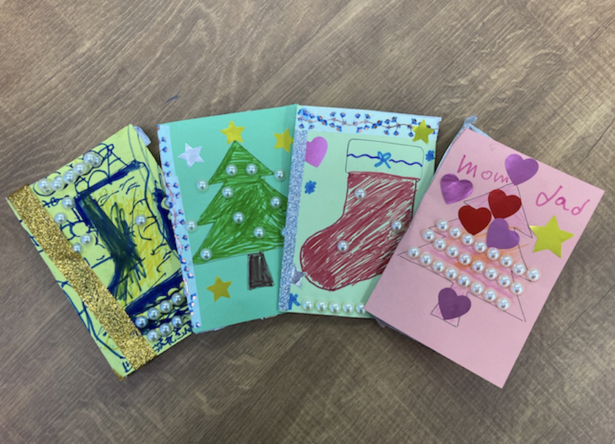 クリスマスについて学んだ後は、みんなでクリスマスカードを作りました!サンタさんにカードを書く子もいれば、友達や親に書く子もいました。みんな思い思いに英語で欲しいものや日頃の感謝を書き起こし、世界に一つだけの特別なクリスマスカードが完成しました。