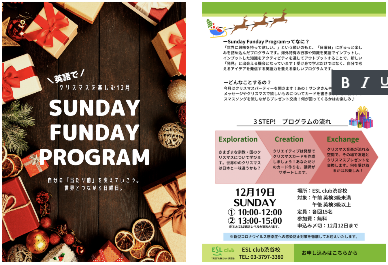 「“英語”を教えない英語塾」のESL clubでは、12月19日にクリスマスにちなみ、英語でクリスマスに触れながら楽しいアクティビティーを行うイベントをESL club渋谷校にて開催いたしました!