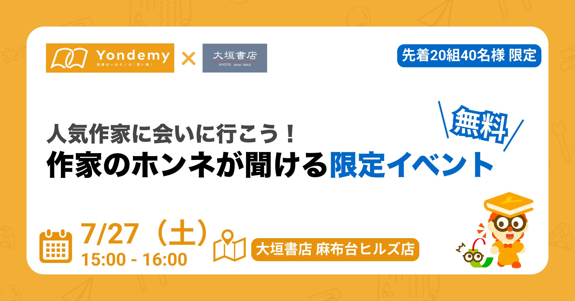 YouTube「ヨンデミーちゃんねる」の開設を記念し、7/27(土)に大垣書店麻布台ヒルズ店にて開催!