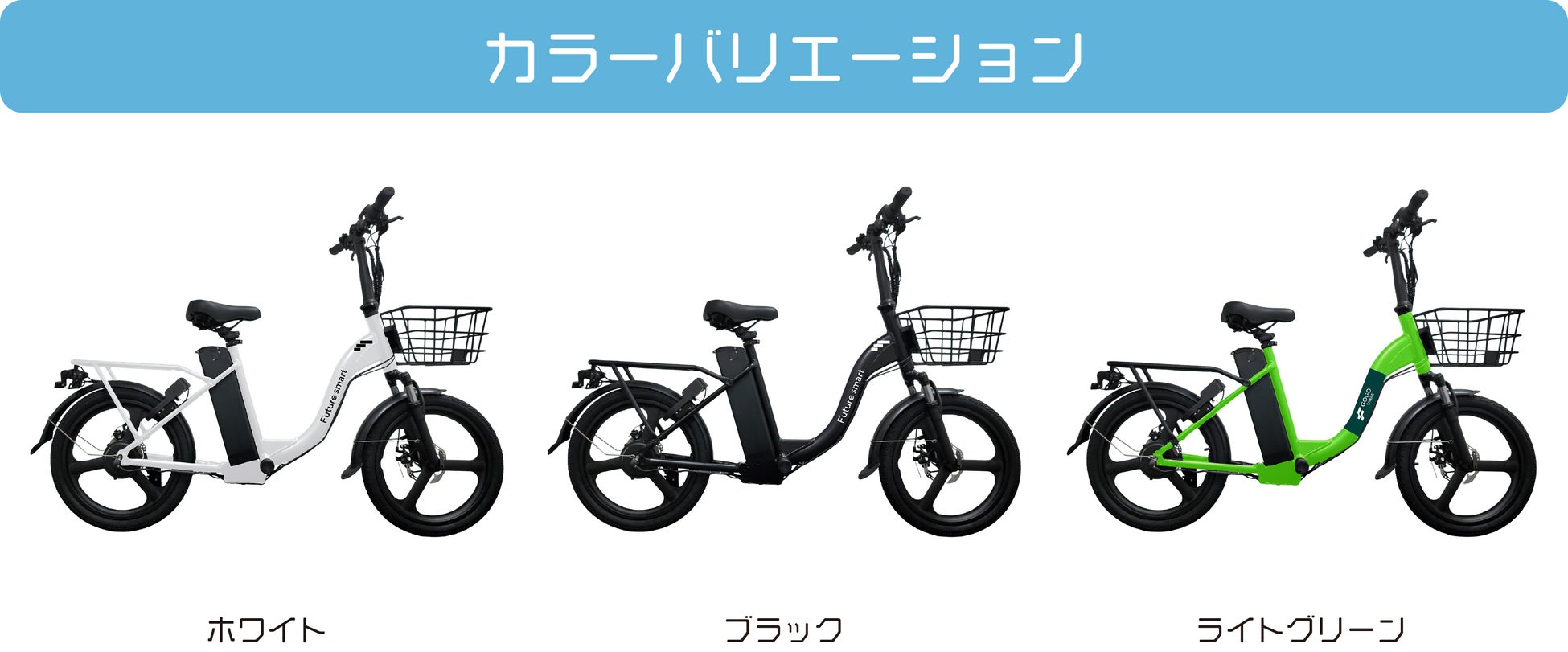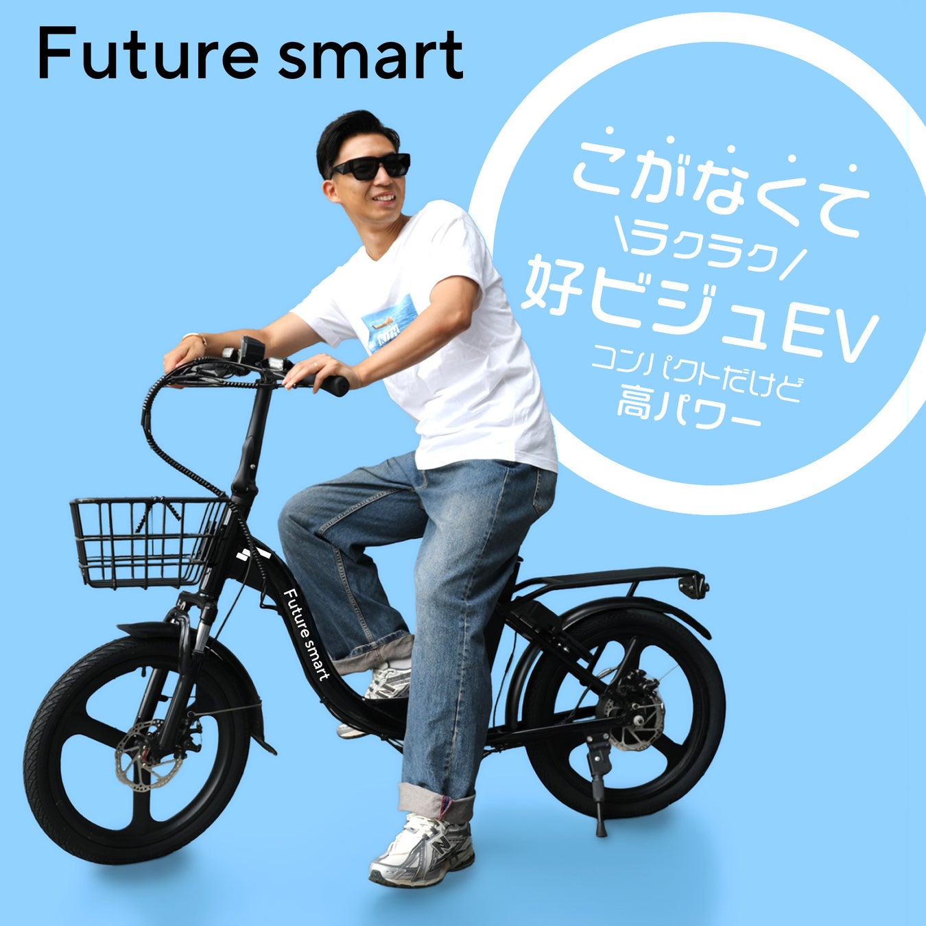 特定小型原動機付自転車「Future smart」は、こがなくても手元のスロットル操作のみで快適に移動できる次世代型電動自転車です。