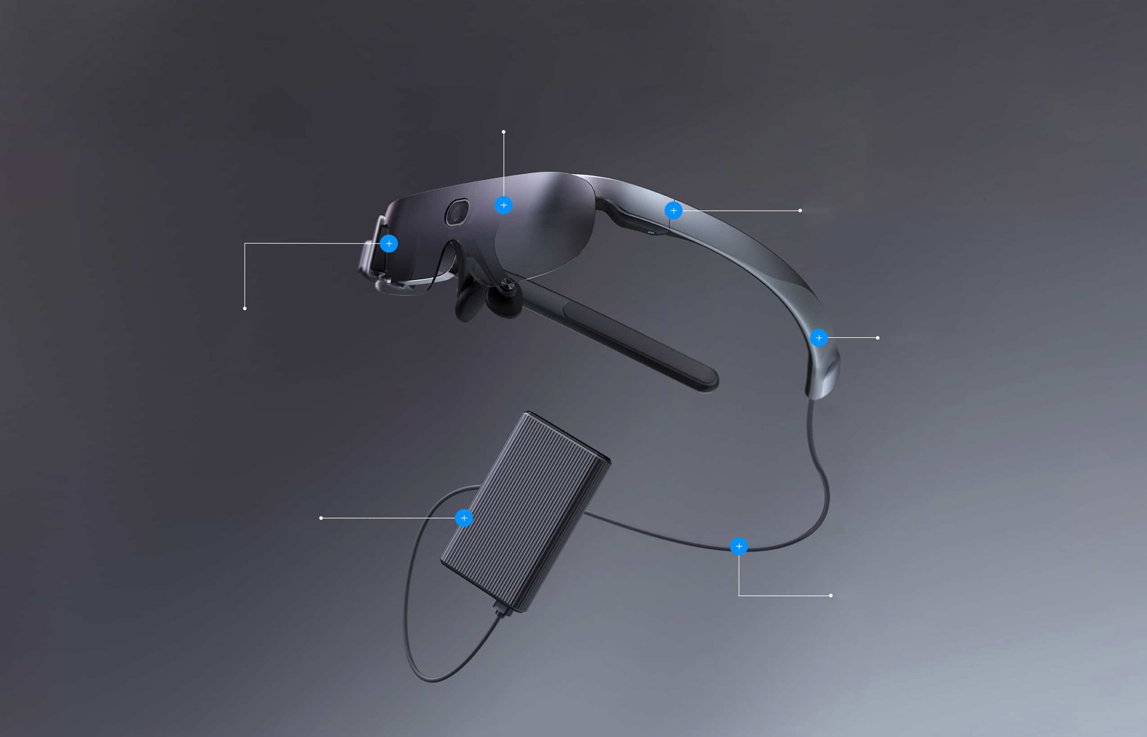ハードウェアは複合現実と人工知能の研究と製品開発を専門とするRokid社製。そのプロダクトのデザイン性もさながら、わずか83gにもかかわらず、120インチ相当のサイズが体感できます。米INDIEGOGOで1.8億の支援を受けた大ヒット商品であり、世界で注目を集めています。