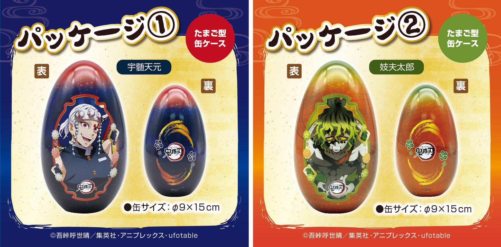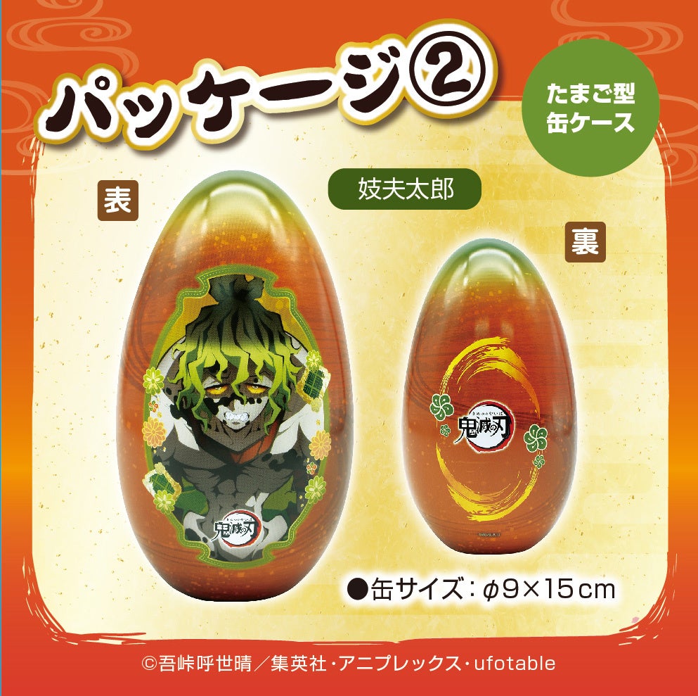 音柱「宇髄天元」 と 上弦の鬼「妓夫太郎」の小物入れにもなる金平糖入りのエッグ缶(シール入)がアミューズメント施設限定で登場!